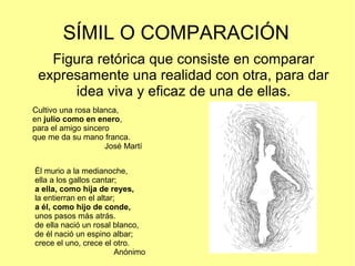 Este documento presenta definiciones y ejemplos de diferentes figuras retóricas como la metáfora, la hipérbole, la sinestesia, la antítesis y el paralelismo. Incluye extractos de poemas de autores como Rafael Alberti, Juan Ramón Jiménez, José Martí y Federico García Lorca que ilustran el uso de estas figuras en la literatura.