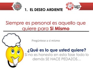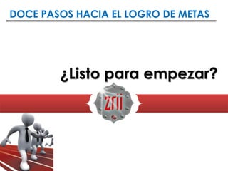 Este documento ofrece consejos sobre cómo establecer y alcanzar metas efectivamente. Primero, debes identificar una meta personal y escribirla. Luego, establece creencias positivas sobre lograrla mediante el establecimiento de metas a corto plazo y la revisión periódica del progreso. También es importante analizar los obstáculos, recursos y apoyo necesarios, y desarrollar un plan de acción detallado con actividades priorizadas y fechas límite. La visualización y la persistencia son clave para mantener el enfoque