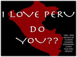 Lima necesita el apoyo de las personas comprando boletos para una rifa a beneficio de una organización en Perú. La organización busca recaudar fondos para continuar su trabajo en el país a través de la venta de boletos para la rifa. Se agradece a quienes colaboren comprando boletos.