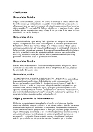 El documento trata sobre la filosofía del lenguaje y la hermenéutica. La filosofía del lenguaje estudia la naturaleza del significado y la relación entre lenguaje, usuarios y el mundo. La semántica se ocupa de la relación entre lenguaje y mundo, mientras la pragmática estudia la relación entre usuarios y lenguaje. La hermenéutica es el arte y conocimiento de la interpretación, especialmente de textos, para determinar el significado exacto. Tiene ramas como la filológica, bíblica