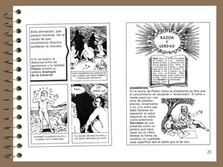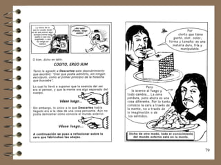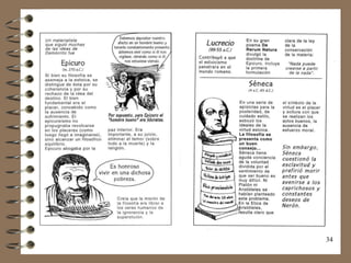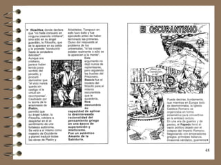 Este documento presenta una breve historia de la filosofía dividida en varias etapas cronológicas, comenzando con la filosofía antigua de Grecia y Roma, luego la filosofía medieval, la filosofía renacentista, la filosofía moderna del barroco y la ilustración, y finalmente la filosofía contemporánea del siglo XIX y XX, mencionando los principales filósofos y corrientes de cada período.