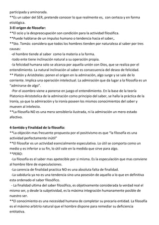 Este documento presenta un resumen del Capítulo 1 del libro "Concepto de Filosofía" de Antonio Millán Puelles. Explica que la filosofía puede definirse de manera nominal como el amor a la sabiduría, pero que no existe una definición real en la que todos los filósofos estén de acuerdo. Explora las diferencias entre filosofía, fe y teología, y analiza la estructura del saber filosófico, dividiéndolo en lógica, filosofía de la naturaleza, metafísica,
