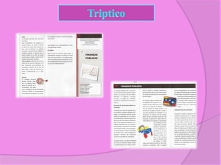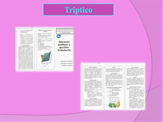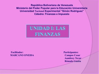 El documento resume las discusiones de varios grupos sobre conceptos de finanzas e impuestos en una clase universitaria. Se explica que las finanzas son la administración de ingresos y gastos, tanto de entidades públicas como privadas. También se clasifican e describen los diferentes tipos de impuestos como tasas, contribuciones especiales e impuestos directos e indirectos, así como las cotizaciones de los empleados.