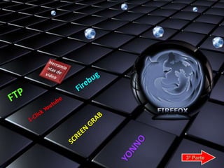 El documento habla sobre varias herramientas y aplicaciones web como Firefox, Scrum, Dropbox, Flickr, Skype, Pixton, Aviary, BlogTalkRadio y Android que permiten compartir archivos, realizar videoconferencias, crear historietas animadas, almacenar fotos, emitir programas de radio en línea y más.