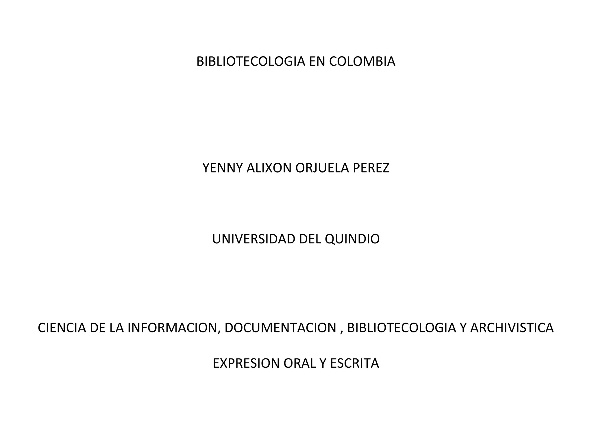 El documento describe la historia y evolución de la bibliotecología en Colombia. Explica que la bibliotecología se remonta a 1936 cuando la Biblioteca Nacional organizó los primeros cursos, y desde entonces la profesión ha ganado reconocimiento a través de la creación de programas universitarios y asociaciones. También resalta algunos pioneros clave y presenta información sobre redes, oferta laboral y videos relacionados con la historia de la bibliotecología en el país.