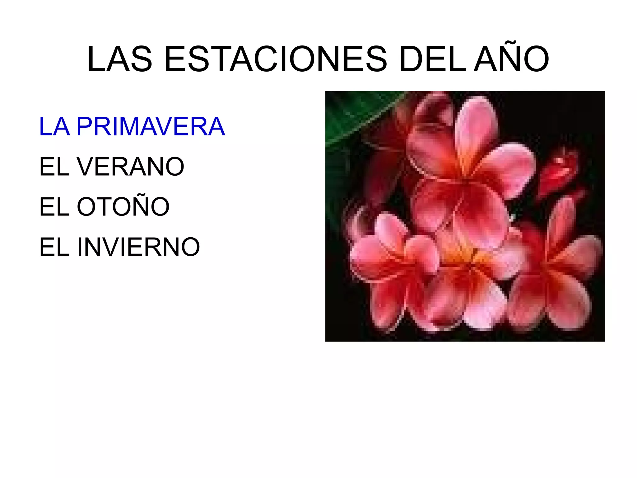 Las cuatro estaciones del año se mencionan brevemente, incluyendo la primavera, el verano, el otoño e invierno.