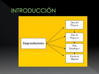 El documento presenta una guía sobre cómo emprender un negocio. Explica que es necesario definir la visión, misión y objetivos de la empresa. Además, recomienda realizar análisis interno y externo, y desarrollar planes de marketing, producción y finanzas. Finalmente, destaca la importancia de planificar el negocio de manera estratégica y tener en cuenta factores como la competencia, clientes y contexto económico.
