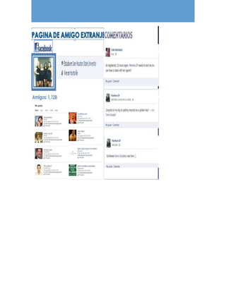 El documento presenta un análisis sociosemiótico del uso de Facebook y celulares. Describe brevemente la evolución de Internet y el aumento de usuarios en México. Luego, analiza perfiles de Facebook de varios amigos y su comportamiento en la red, incluyendo datos personales, fotos, amigos, gustos y publicaciones. Finalmente, examina artículos sobre comunicación, poder y globalización en el contexto tecnológico actual.