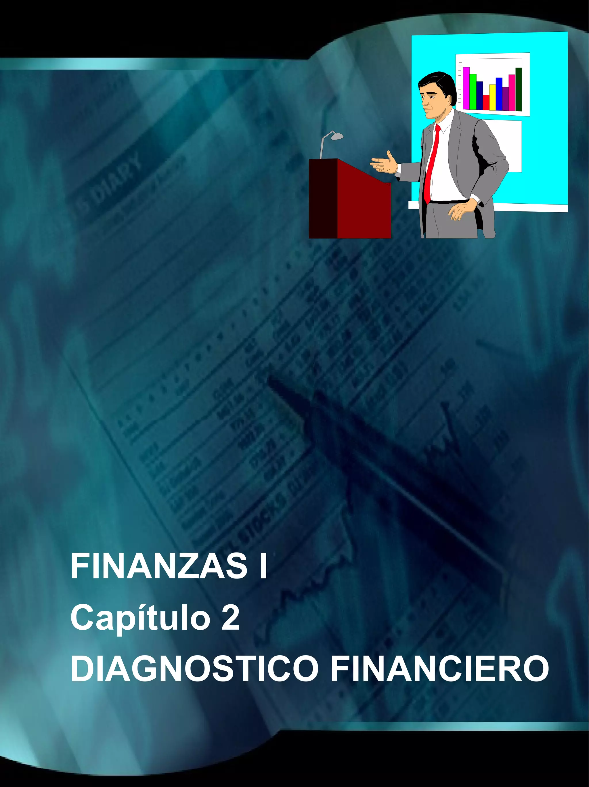 Este capítulo trata sobre el análisis financiero a través de técnicas como el análisis vertical, el análisis horizontal y las razones financieras. Explica cómo aplicar estas técnicas a los estados financieros básicos para diagnosticar la situación financiera de una empresa. También define conceptos clave como capital de trabajo, liquidez, rentabilidad y apalancamiento financiero, y presenta fórmulas para calcular razones relacionadas a estas áreas.