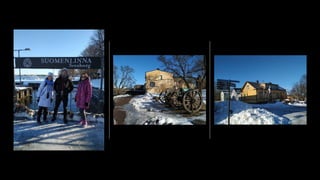 Este documento presenta la experiencia de un estudiante en Finlandia. Incluye descripciones e imágenes de lugares turísticos en Helsinki como iglesias, museos y parques. También detalla las actividades realizadas como visitas a escuelas, presentaciones sobre energía, clases y excursiones a otras ciudades y la isla de Hailuoto. El estudiante se alojó con una familia que le enseñó deportes tradicionales y le brindó una perspectiva local de Finlandia.