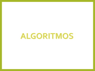 Este documento describe diferentes tipos de algoritmos, incluyendo algoritmos de ordenamiento que organizan elementos en una lista de acuerdo a un orden específico, algoritmos de búsqueda que localizan elementos con propiedades particulares dentro de una estructura de datos, y algoritmos probabilísticos que basan sus resultados en decisiones aleatorias.