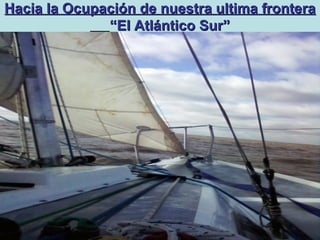 El documento habla sobre la ocupación permanente del espacio marítimo argentino en el Atlántico Sur por parte de estudiantes de ingeniería y ciencias atmosféricas y oceánicas de la UBA. El objetivo es reafirmar la soberanía argentina en la región a través de viajes educativos, investigación científica, control ambiental y deportes, incluyendo la instalación de estaciones científicas oceánicas flotantes y la participación de naves de otros países de América Latina. Se pide a
