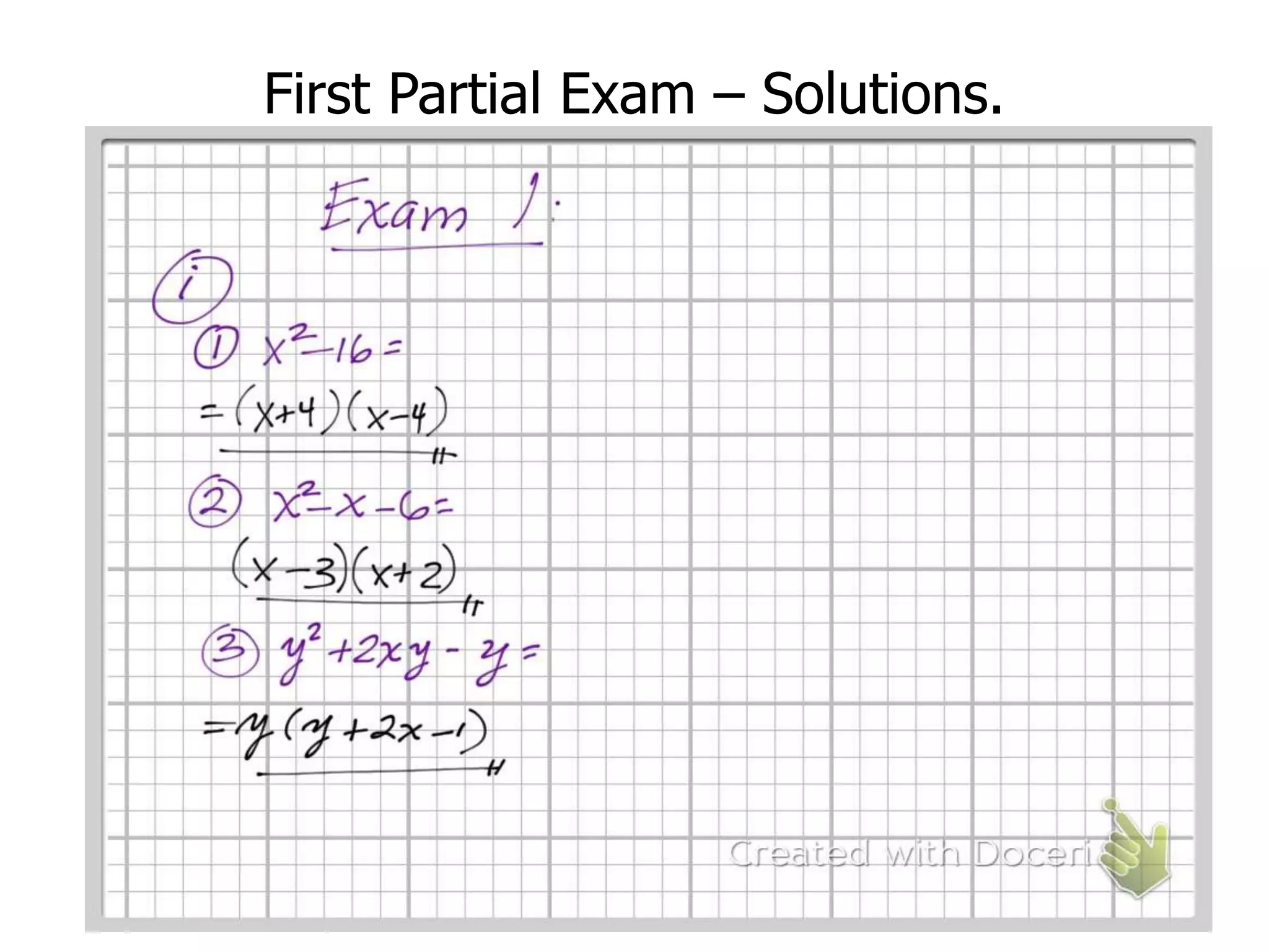 Powerpoint con la solución de mi primer examen parcial de mi curso de Cálculo integral del semestre Enero - mayo de 2013.