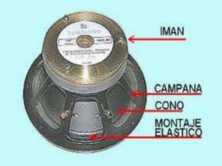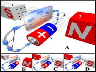 El documento presenta conceptos clave sobre electroimanes, parlantes, efecto Hall, transformadores y generadores eléctricos. Detalla cómo el electroimán utiliza corriente eléctrica para generar un campo magnético, y cómo los parlantes convierten energía eléctrica en sonido. También se aborda el efecto Hall relacionado con campos magnéticos y la conversión de energía en transformadores y generadores eléctricos.