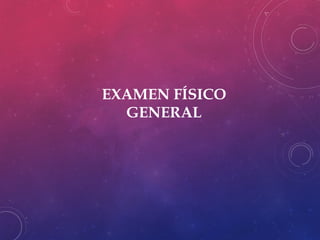 El documento detalla el procedimiento y componentes del examen físico del paciente, incluyendo evaluación general y segmentaria de diferentes sistemas corporales. Se mencionan criterios de normalidad en parámetros vitales como pulso, respiración y presión arterial, así como la interpretación de hallazgos clínicos en piel, abdomen y extremidades. Se enfatiza la importancia de las observaciones y la anamnesis en la práctica clínica para detectar signos de enfermedad.