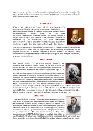 Nicolás Copérnico fue un astrónomo polaco del Renacimiento que formuló la teoría heliocéntrica del sistema solar, concebida inicialmente por Aristarco de Samos, la cual es considerada una de las teorías más importantes en la historia de la ciencia occidental. Johannes Kepler fue un astrónomo y matemático alemán conocido por sus leyes sobre el movimiento de los planetas. Isaac Newton fue un físico, matemático y filósofo inglés que describió la ley de la gravitación universal y estableció las bases de