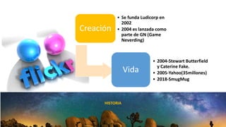 Flickr es un sitio web que permite a los usuarios almacenar, organizar, buscar, vender y compartir fotografías y videos de manera gratuita. Los usuarios pueden crear una cuenta para unirse a una comunidad que comparte contenido fotográfico y utilizar herramientas para editar, organizar y distribuir sus fotos y videos.