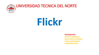 Flickr es un sitio de Internet creado en 2004 para almacenar y compartir imágenes y videos. Los usuarios pueden cargar fotos, crear álbumes, unirse a grupos, y compartir sus fotos en otras redes sociales. Flickr ofrece terabytes de almacenamiento gratuito para fotos de alta resolución y permite editar y organizar colecciones de fotos de manera fácil.