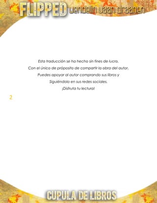 Este documento presenta un resumen de 3 capítulos de la novela "Flipped" narrados desde la perspectiva de Bryce. En el primer capítulo, Bryce describe su primer encuentro con Juli cuando se mudó a su vecindario a los 7 años de edad, y cómo ella irrumpió en su vida de forma invasiva. A pesar de sus intentos por evitarla, Juli continuó buscándolo para jugar. En el segundo capítulo, Bryce explica cómo su hermana Lynetta intentaba sabotear sus esfuerzos por evitar a Juli. El documento present