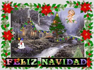 La tarjeta de Navidad interactiva presenta una escena navideña con elementos como una chimenea, un río, una casa y un puente que se iluminan o activan al hacer clic en ellos, así como un muñeco de nieve y nieve caída. La tarjeta desea que la alegría de la Navidad invada los corazones y que haya mucho amor y cariño junto a la familia esta temporada.