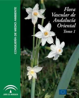 Este documento presenta el primer volumen de la Flora Vascular de Andalucía Oriental, que describe las especies de plantas vasculares de las provincias orientales de Andalucía. Incluye información sobre la organización de la obra, los autores que revisaron cada familia, ilustraciones y fotografías. Además, presenta índices de nombres científicos y vernáculos al final.