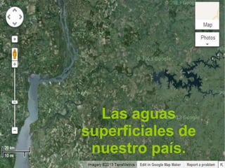 Uruguay tiene numerosos ríos, arroyos, lagunas y cañadas que desembocan en el Océano Atlántico. El agua de estos cursos de agua es un recurso natural valioso para el país. Los cursos de agua uruguayos tienen direcciones determinadas por las cuchillas divisorias de aguas y sus caudales varían dependiendo de las lluvias. La mayoría no son navegables.