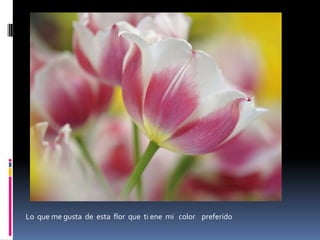 Las estudiantes describen varias flores que les gustan debido a sus colores, formas y aromas preferidos como el azul, amarillo, rojo, rosado y verde. Mencionan que les gusta una flor en particular por ser de su color favorito y por provenir de un árbol, y que en general consideran que las flores son bonitas.