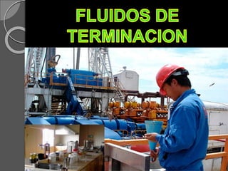 Este documento describe los diferentes tipos de fluidos de terminación utilizados para controlar la presión en los yacimientos y protegerlos durante operaciones de completamiento y trabajos posteriores. Las salmueras preparadas son las más comúnmente usadas en formaciones no consolidadas, mientras que el petróleo crudo y aceites refinados se usan en formaciones sensibles a las salmueras. Las salmueras son preferidas porque tienen mayor densidad que el agua dulce pero carecen de partículas sólidas que podrían dañar las formaciones.