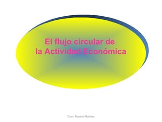 El documento explica el flujo circular de la renta en la economía entre las familias, empresas y el estado. Las familias son propietarias de factores productivos que entregan a las empresas a cambio de rentas. Las empresas producen bienes y servicios que intercambian con las familias por dinero. El estado recauda impuestos y otorga subvenciones a familias y empresas.