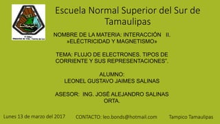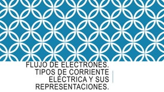 Este documento resume los conceptos fundamentales de la corriente eléctrica, incluyendo el flujo de electrones, los tipos de corriente (alterna y directa) y sus representaciones. Explica que la corriente eléctrica se produce por el flujo de electrones a través de conductores, y que la corriente alterna cambia periódicamente de dirección mientras que la corriente directa fluye siempre en la misma dirección.