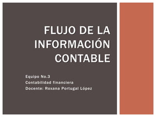Este documento describe el flujo de información contable en una empresa, incluyendo la compra y venta de mercancías y cómo esto genera registros contables. Explica que el objetivo de la contabilidad es proporcionar información para la planificación y gestión de la empresa. También resume los pasos fundamentales del ciclo de vida de un sistema de información, el cual incluye etapas como el estudio, análisis, diseño e implementación. Finalmente, menciona los nombres de los integrantes del equipo que elaboró el documento.