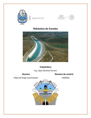 Este documento describe el flujo uniforme en canales. Explica que los canales son conductos abiertos por los que fluye el agua debido a la gravedad. Se clasifican en naturales y artificiales, y las secciones transversales más comunes son trapezoidal, rectangular, triangular y circular. También define elementos geométricos como profundidad, talud, rugosidad y pendiente. Finalmente, contrasta el flujo en canales abiertos versus el flujo en tuberías.