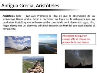 2) Se explica la ley de Newton de la inercia y cómo Galileo Galilei demostró que el estado natural de un objeto es el movimiento, no el reposo.