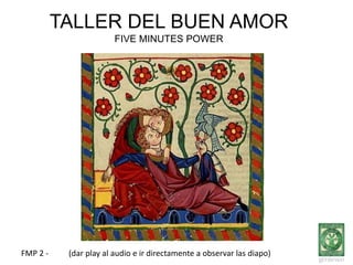 Este taller busca enseñar a las parejas a comunicarse mejor y fortalecer su relación en solo 5 minutos diarios. El taller propone ejercicios breves de escucha activa, contacto visual y afecto para mejorar la intimidad emocional y física entre las parejas.