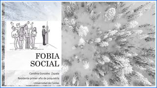 El documento describe el trastorno de ansiedad social, también conocido como fobia social. Este trastorno se caracteriza por el miedo a situaciones sociales que implican escrutinio o contacto con desconocidos. Las personas con este trastorno tienen miedo de sentir vergüenza en situaciones sociales. El documento discute las características clínicas, factores de riesgo, tratamiento y medicamentos utilizados para tratar este trastorno.
