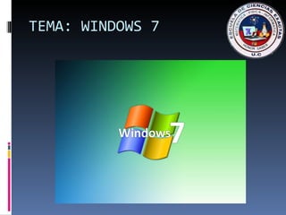 El documento presenta un análisis del sistema operativo Windows 7, enfatizando su importancia, características de seguridad y facilidad de uso. Se abordan sus fortalezas, como los gadgets y bibliotecas, así como debilidades y amenazas, incluida la competencia de sistemas libres. Las conclusiones destacan que Windows 7 consume menos recursos y ha superado en ventas a su predecesor, Windows XP.