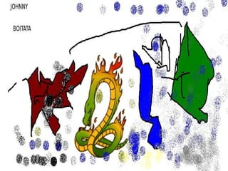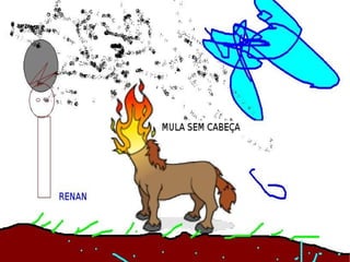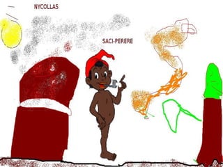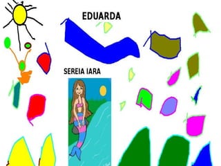 Los estudiantes investigaron imágenes de personajes del folclore, las recortaron y pegaron en un programa de pintura para hacer bonitos dibujos. Los estudiantes pertenecían al segundo grado de la escuela M.E.F. Ricieri Marcatto en Jaraguá do Sul, Santa Catarina, Brasil.