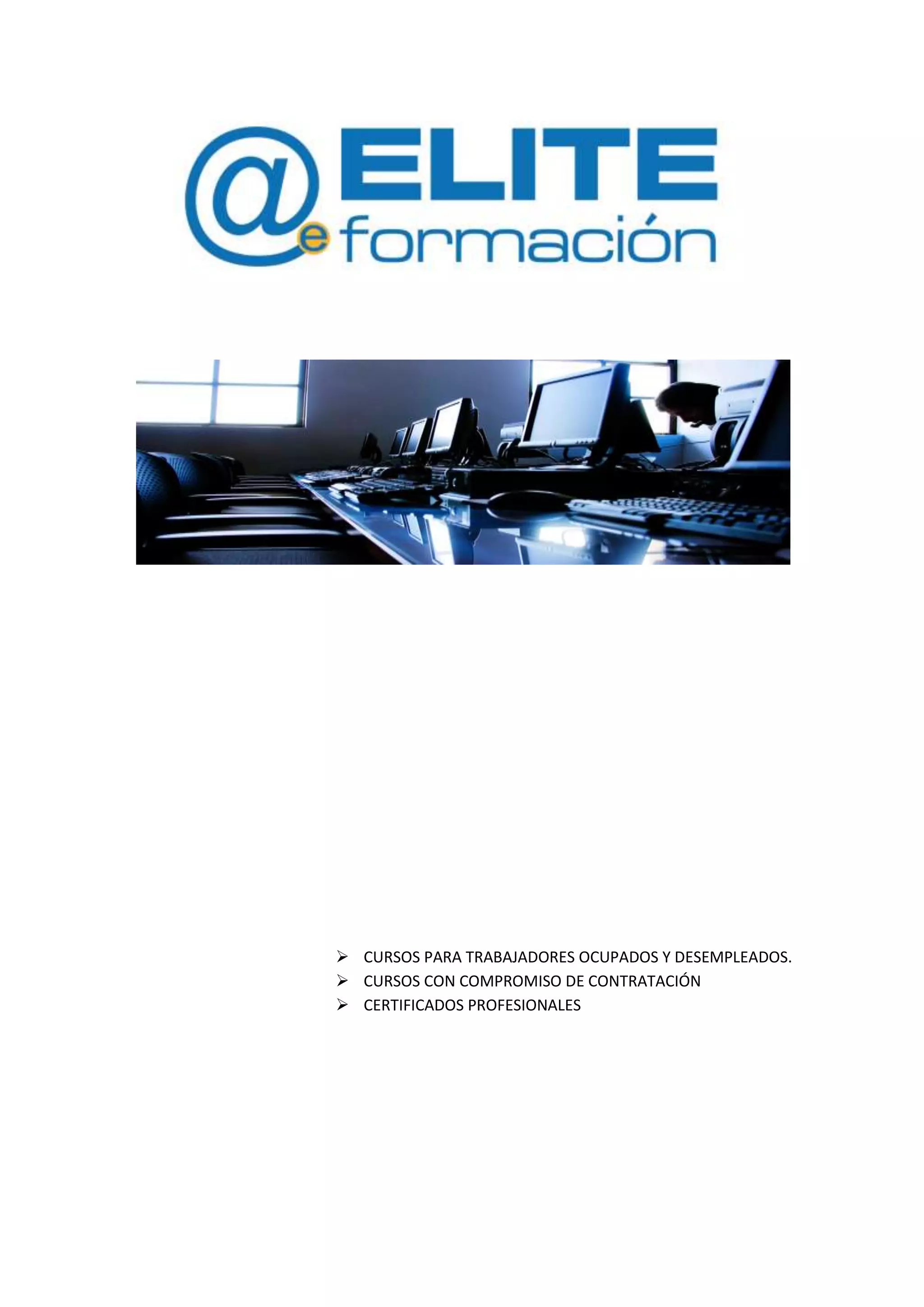 Este documento ofrece información sobre cursos de formación profesional para el empleo en diferentes especialidades como administración, comercio, hostelería, construcción, energía, pequeño comercio, sanidad y frio y climatización. Los cursos son gratuitos, subvencionados y con compromiso de contratación. Se detallan objetivos, contenidos y duración de los programas formativos.