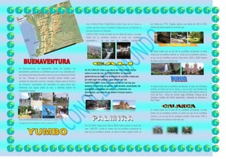Este documento contiene información sobre varias ciudades y departamentos de Colombia. Incluye detalles sobre sus límites, atracciones turísticas, gastronomía y altura sobre el nivel del mar.