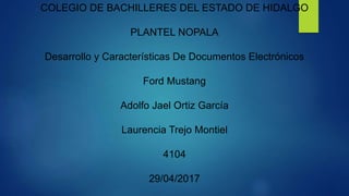 El documento describe la historia del Ford Mustang a través de sus 5 generaciones desde 1964 hasta la actualidad. Comenzó como un "pony car" deportivo de dos puertas con motor de 6 cilindros. Ha pasado por cambios significativos a lo largo de las generaciones pero siempre manteniendo su estilo deportivo icónico. La quinta generación iniciada en 2005 tomó un enfoque retro basado en el diseño original que ha contribuido a su continua popularidad y éxito en el mercado.