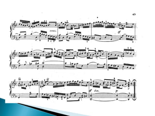 Este documento describe la forma binaria, que consiste en dos secciones (A y B) donde la sección A se repite. La forma binaria es continua porque el primer período demanda continuidad con el segundo. Se analizan ejemplos musicales como un minueto de Purcell y un tema de Frescobaldi para ilustrar esta forma musical básica de repetición y contraste entre dos secciones.