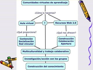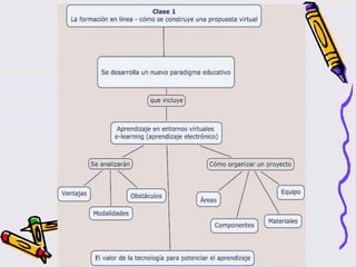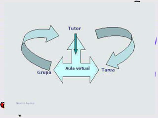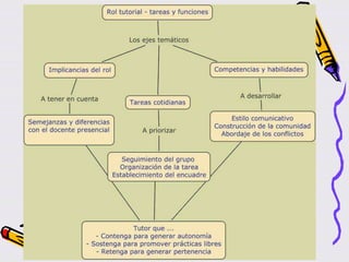 Este documento describe los módulos de un curso sobre tutoría y moderación de grupos en entornos virtuales. Los módulos cubren temas como la formación en línea, el rol del tutor, el sostenimiento de comunidades virtuales de aprendizaje y la práctica en una plataforma de aprendizaje. La conclusión destaca que la tutoría virtual ayuda a los estudiantes a integrarse en el entorno educativo virtual, resolver dudas y evitar el aislamiento. El desarrollo tecnológico permite nuevas plataform
