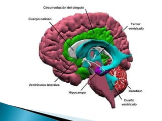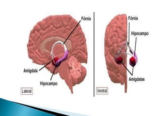 El hipocampo está situado en la superficie media del lóbulo temporal y recibe información del córtex cerebral. Su principal función es la consolidación de la memoria y el aprendizaje. Una lesión en el hipocampo produce amnesia anterógrada y afecta la memoria de hechos específicos pero no el aprendizaje de nuevas habilidades.