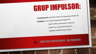 Este documento presenta la información sobre un proyecto Erasmus+ KA1. Los objetivos del proyecto son abrir la escuela a la internacionalización europea, informar al profesorado sobre las oportunidades de Erasmus+, crear un proyecto adecuado a las necesidades de la escuela, y compartir experiencias. Se explican los pasos que debe seguir la dirección, las características de la financiación, y cómo diseñar y elaborar el proyecto. Finalmente, se detallan las opciones para buscar cursos y las condiciones