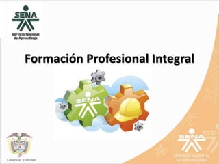 La Formación Profesional Integral del SENA tiene como objetivo que las personas adquieran y desarrollen conocimientos, destrezas y valores a lo largo de su vida para su realización personal y participación en el trabajo y la sociedad. Sus metas incluyen aprender a aprender, aprender a hacer y aprender a ser. El SENA busca lograr calidad en la formación a través de una combinación eficiente y eficaz de recursos que conduzca al desarrollo integral de las personas. Su modelo pedagógico forma seres humanos con fundamentos tecnológicos