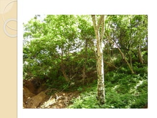 El documento describe las zonas de vida y las formaciones vegetales de Costa Rica, dividiendo el país en 12 zonas de vida y 12 zonas de transición basadas en factores climáticos como la temperatura, precipitación y humedad. Se detallan diferentes formaciones vegetales, incluyendo bosques de manglar, bosque de galería, sabanas y bosques deciduos, así como las especies representativas de cada tipo. Además, se aborda la influencia de factores abióticos en la vegetación y la importancia ecológica de estas formaciones.