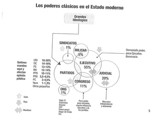 El documento describe diferentes formas y clasificaciones de gobiernos y regímenes políticos. Explica que un régimen político se refiere a quién ejerce realmente el poder de forma efectiva, más allá de la estructura formal de gobierno. Luego discute las clasificaciones de regímenes políticos propuestas por diferentes autores, incluyendo aquellos que se concentran en el origen, ejercicio y fines del poder o en el número de partidos políticos. Finalmente, contrasta las características de regímenes democráticos,