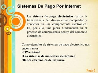 Este documento describe varios mecanismos de pago electrónico y aspectos de seguridad para el comercio electrónico, incluyendo sistemas de pago como TPV virtual, dinero electrónico y tarjetas de crédito, así como protocolos de seguridad como SSL y SET y métodos de cifrado y firmas digitales.