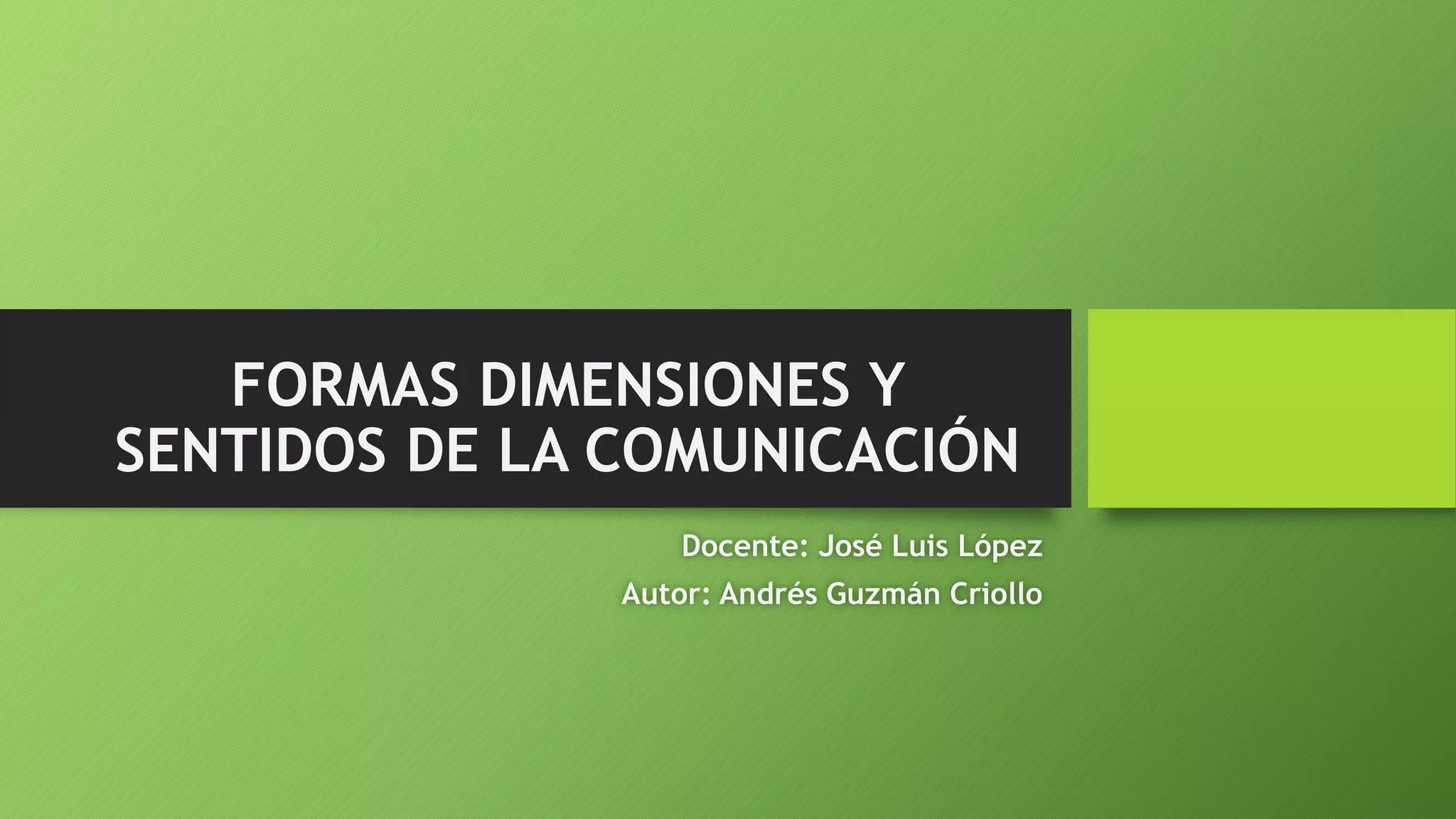 Este documento describe las diferentes formas, dimensiones y sentidos de la comunicación. Explora las primeras formas de comunicación entre humanos a través de gestos y sonidos, y cómo esto evolucionó para permitir la creación de culturas. Luego analiza las características de la comunicación oral, escrita, gestual e icónica. Finalmente, discute las dimensiones normativas y funcionales de la comunicación, y los tres sentidos de la comunicación: directa, técnica y social-funcional.