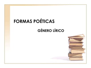 Este documento describe diferentes formas poéticas como la oda, el soneto, la décima y el haiku. La oda es una composición de tono elevado sobre temas diversos. El soneto consta de 14 versos endecasílabos organizados en dos cuartetos y dos tercetos. La décima tiene 10 versos octosílabos con una estructura de rima específica. El haiku es un poema japonés breve de tres versos con cinco, siete y cinco sílabas respectivamente.